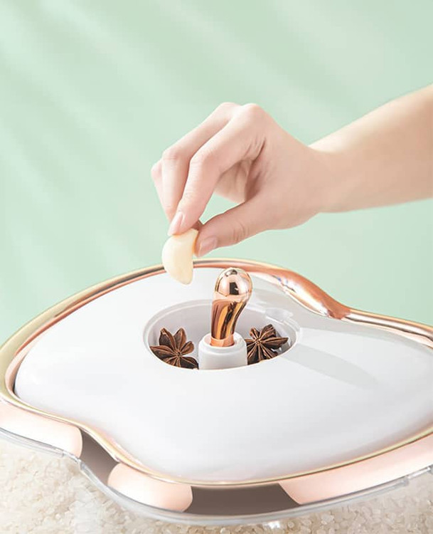 قسمت بالای ظرف دارای محفظه سیر میباشد برای جلوگیری از شته زدن مواد