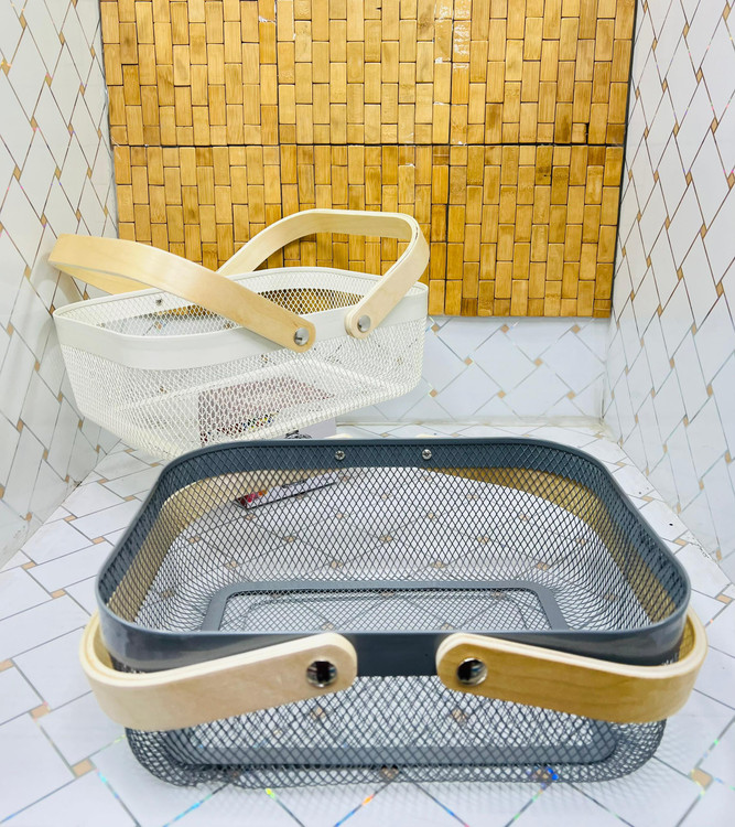سبد فلزی مستطیل شکل دسته بامبو سایز کوچک