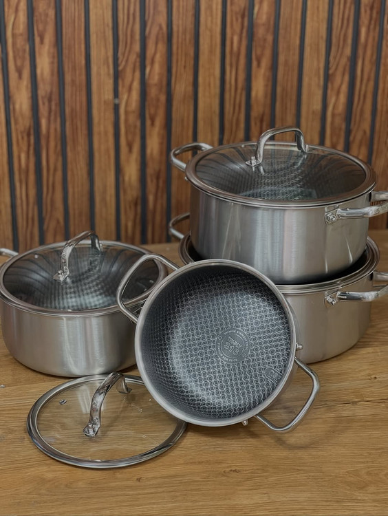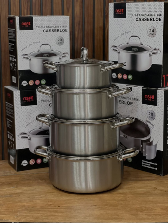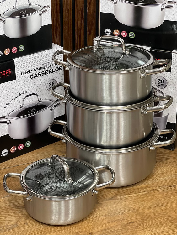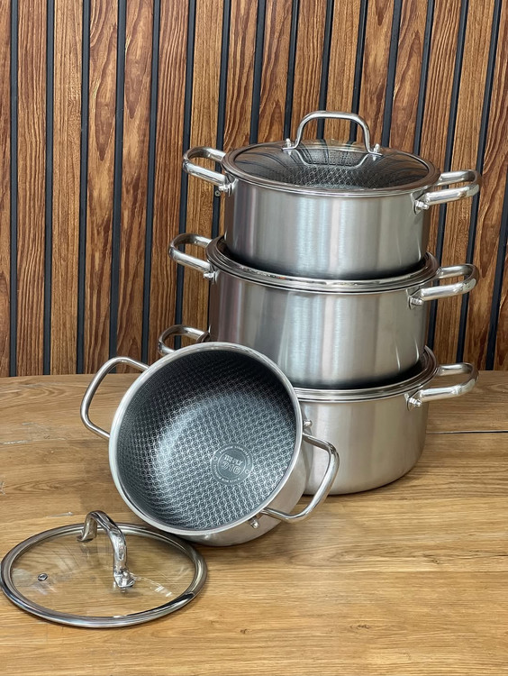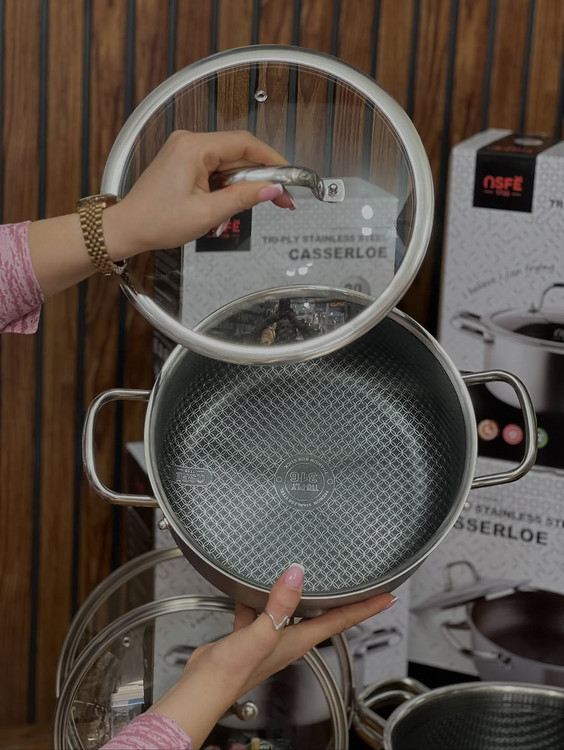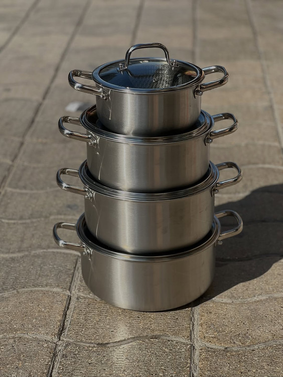 سرویس قابلمه استیل۳۱۶ کف لیزری ضخیم ۱۰ میل سه لایه ضد خش کاملا نچسب