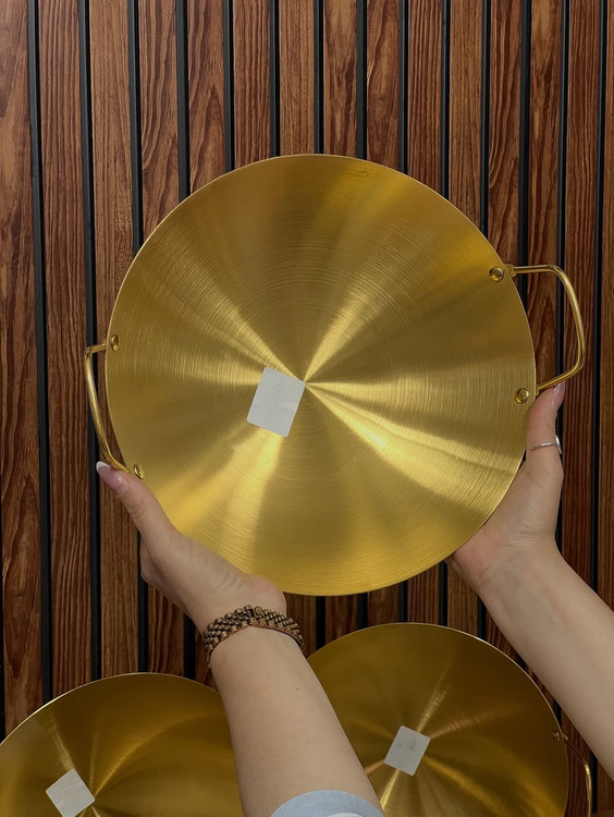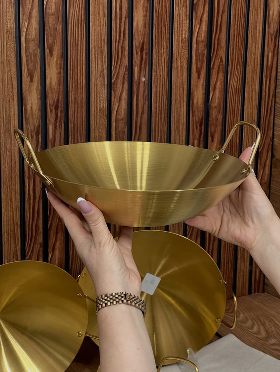 کاسه دو دسته طلایی استیل ضخیم ضد زنگ قطر ۳۰ سانت