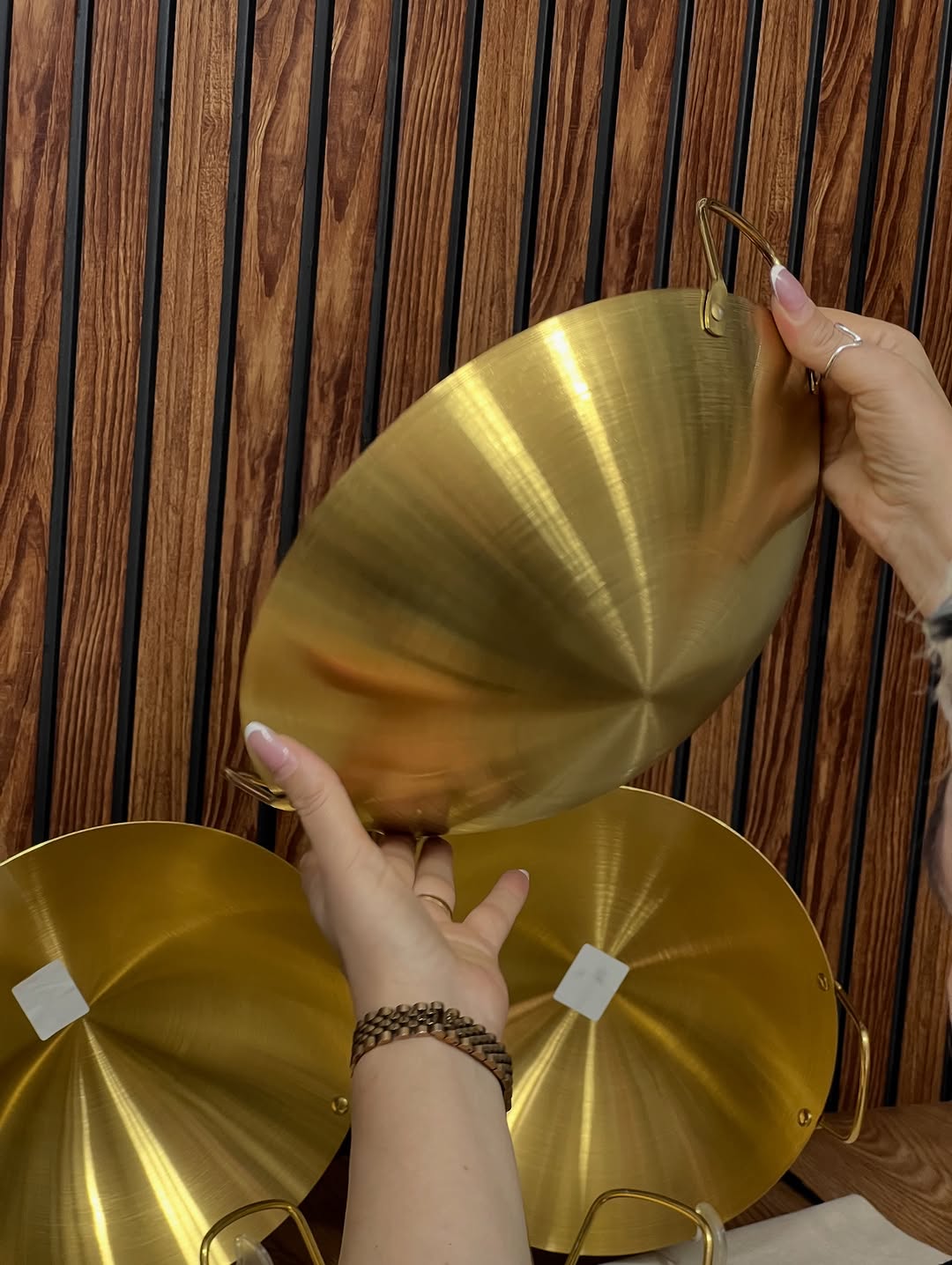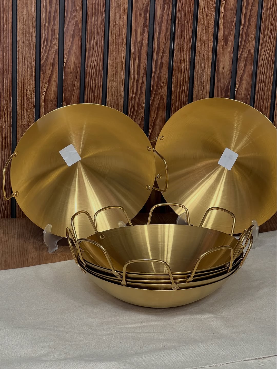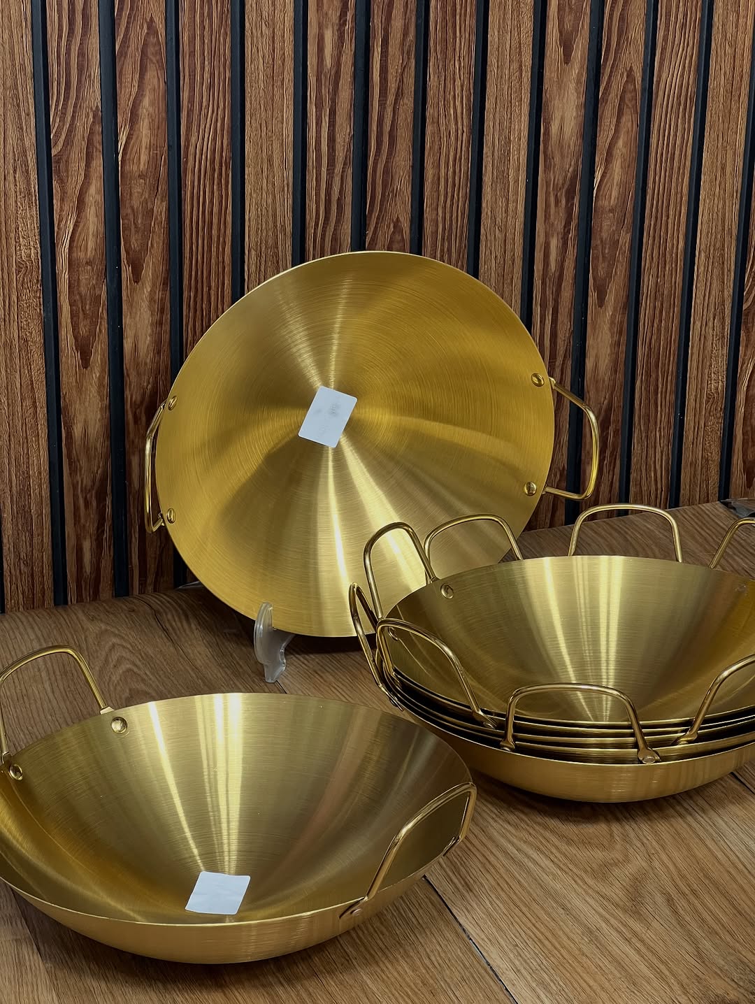 کاسه دو دسته طلایی استیل ضخیم ضد زنگ قطر ۳۰ سانت