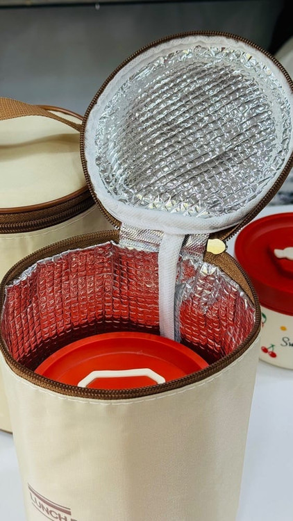 ست چهار تکیه لانچ باکس سه تایی همراه با ساک مخصوص و نسوز گرم نگهدارنده تا ۴۲ درجه محافظ دما